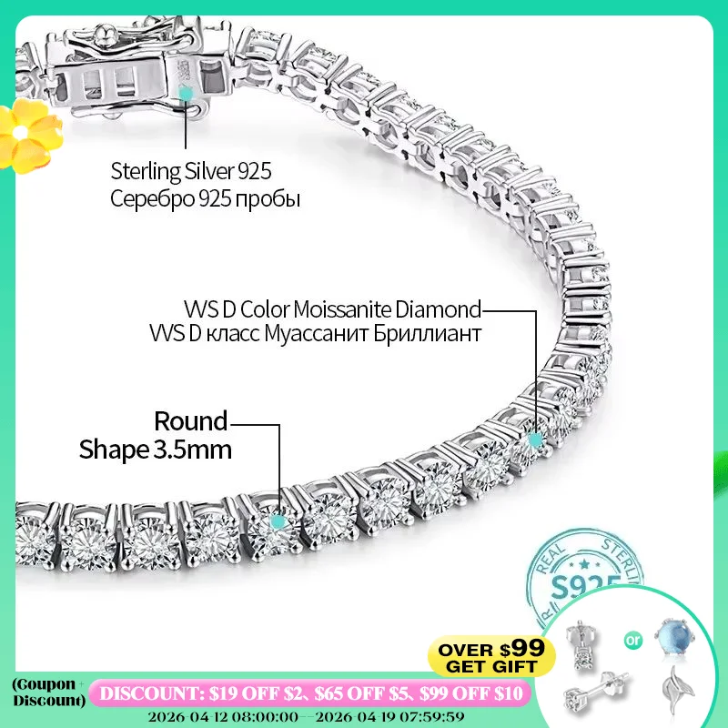 ATTAGEMS-Bracelet Tennis Moissanite pour Femme, Argent 925 Plaqué Or Blanc, Coupe Ronde GRC, Passe au Document D, Cochon 4,0mm