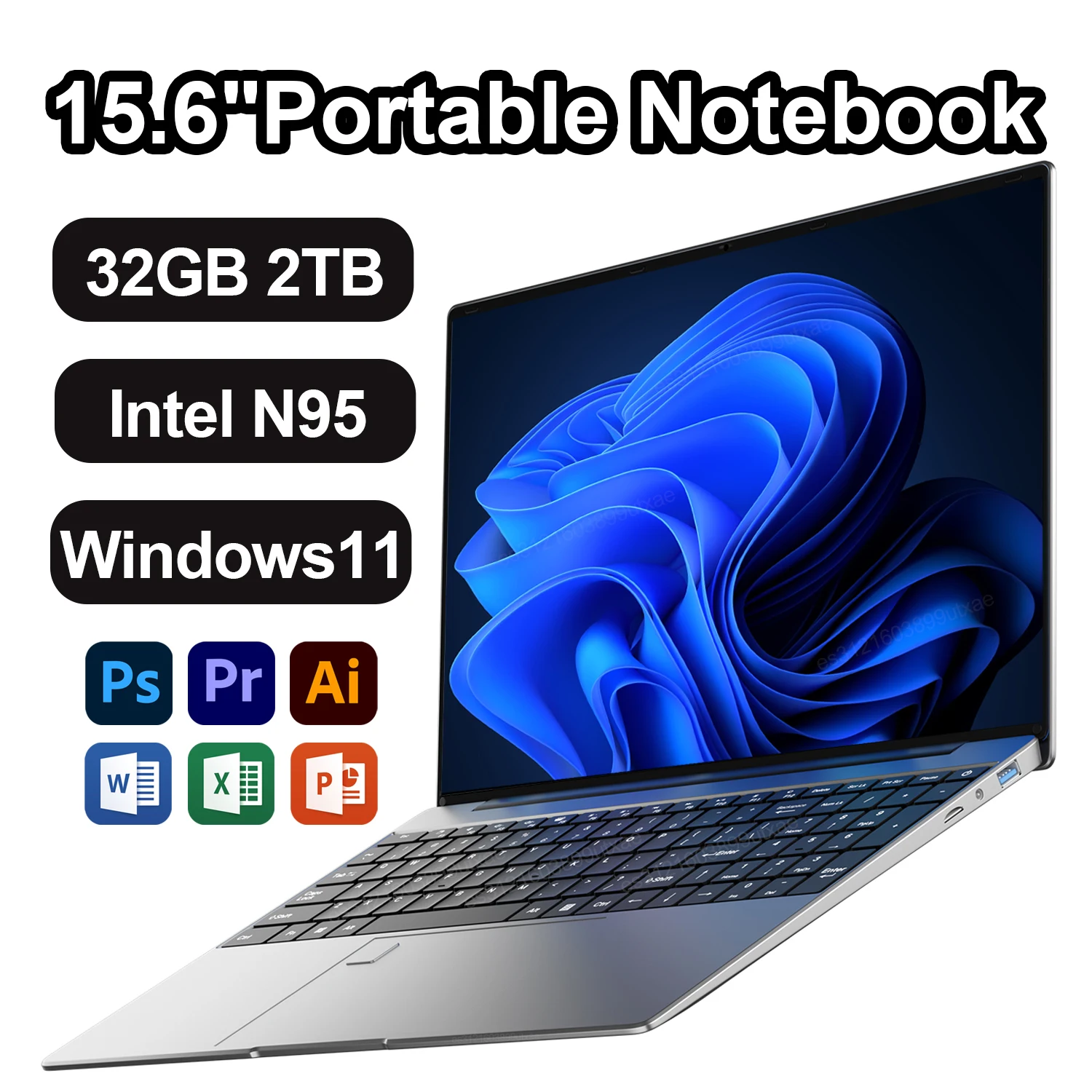 2025 chaud 15.6 "ordinateur Portable 32GB DDR4 2 to SSD Intel N95 7500mAh Windows11 bureau ordinateur Portable Gamer avec empreinte digitale rétro-éclairé