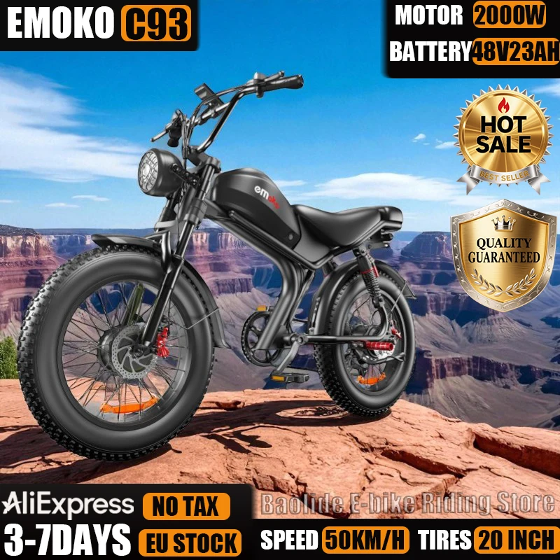 2000W moteur Emoko C93 48V23AH batterie au Lithium vélo électrique frein hydraulique moto 20*4 pouces gros pneu montagne e-bike