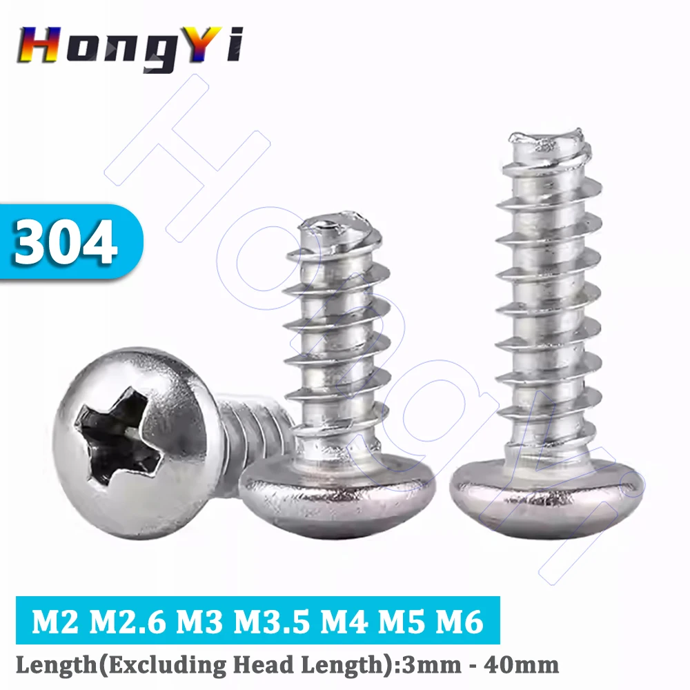 Vis autotaraudeuses à tête ronde Phillips en acier inoxydable 304, M2 M2.6 M3 M3.5 M4 M5 M6, longueur 3-40mm