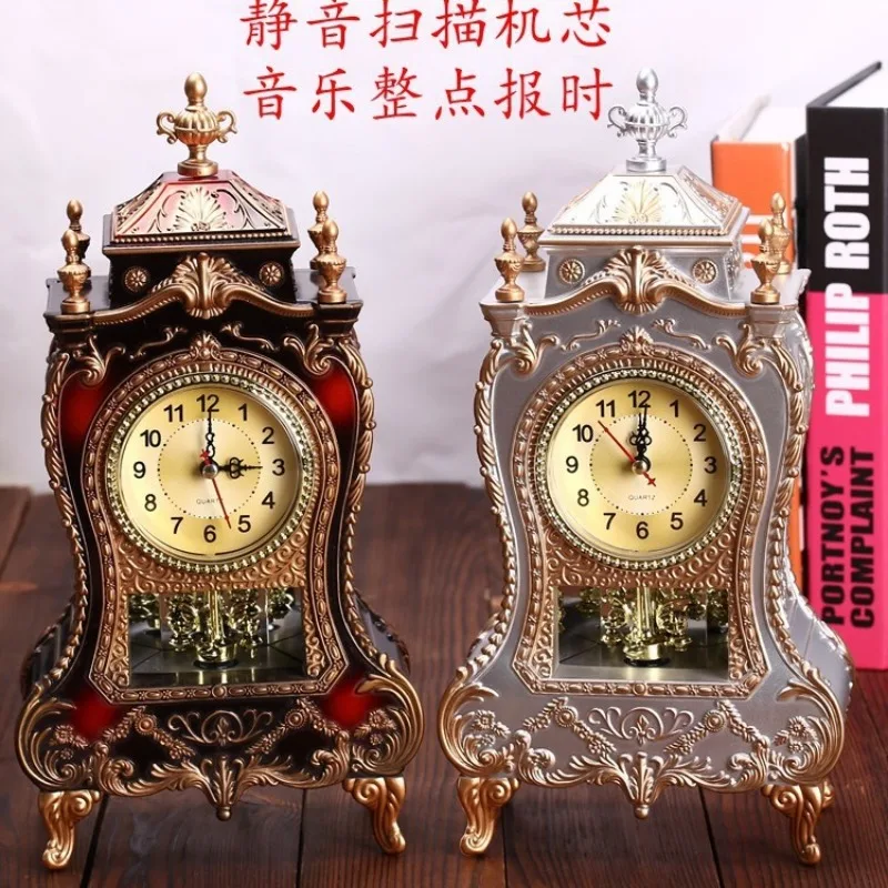 Horloge de Table de style européen horloge de bureau Antique horloge décorative de salon horloge de deuxième balayage muet 16 horloge de secouage de l'heure de musique