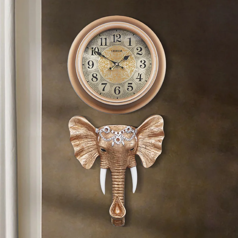 Horloge murale silencieuse vintage américaine créative pour salon, éléphant vintage européen, horloge décorative à quartz pour chambre à coucher