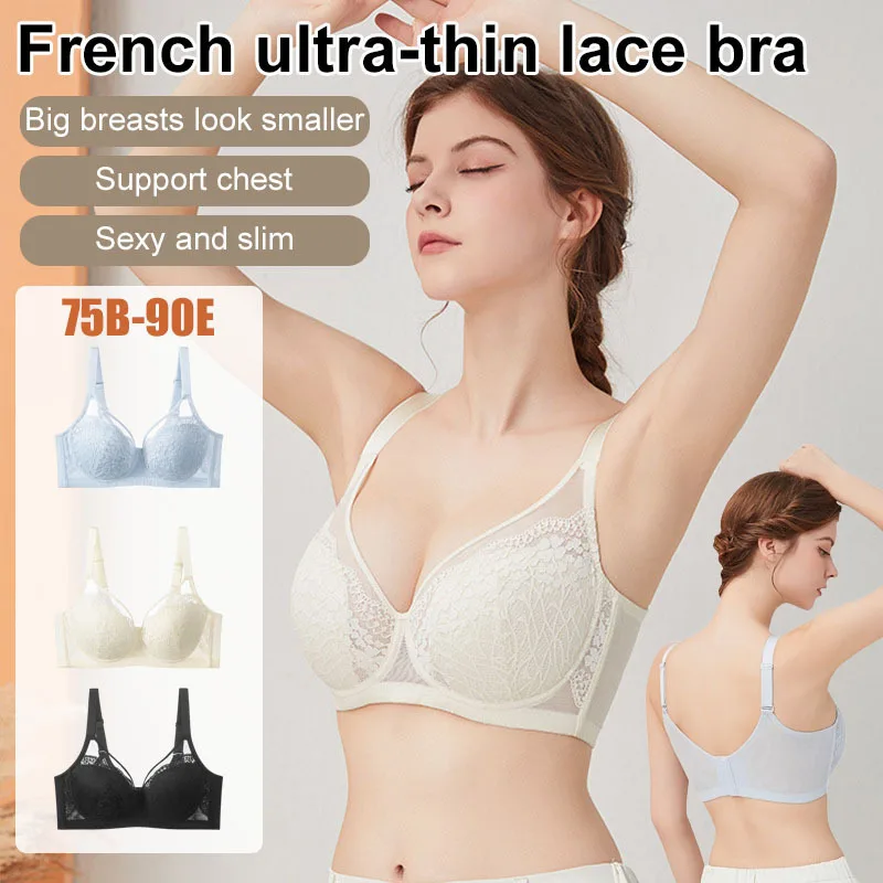 Soutien-gorge fin à gros seins, soutien-gorge confortable avec haut froncé