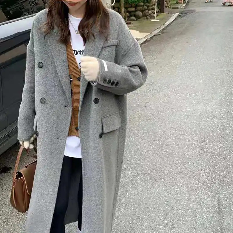 Manteau coréen en laine unie 2025, Trench Long surdimensionné pour femme, veste d'hiver longueur aux genoux, nouvelle collection