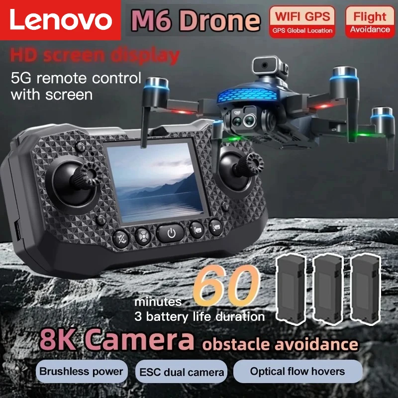 Drone professionnel Lenovo M6 4K avec écran, WIFI 5G, caméra HD 8K, moteur sans balais, FPV, quadricoptère RC, hélicoptère UAV