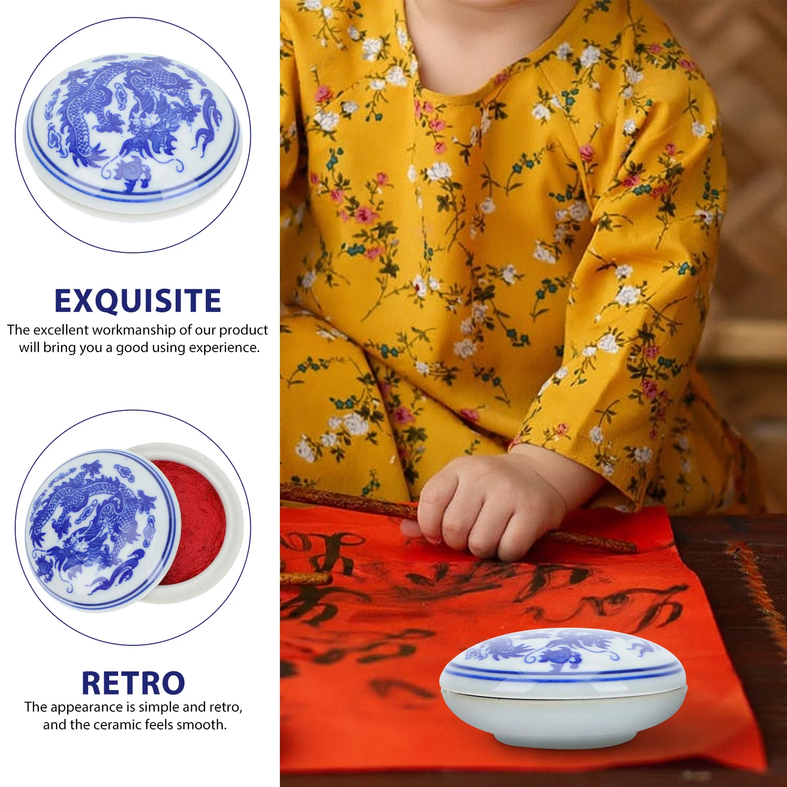 Yao – boîte de tampon encreur en céramique, conteneur de pâte d'encre rouge pour le stockage de la calligraphie, Surface lisse, léger, Design Vintage, bureau, 1 pièces