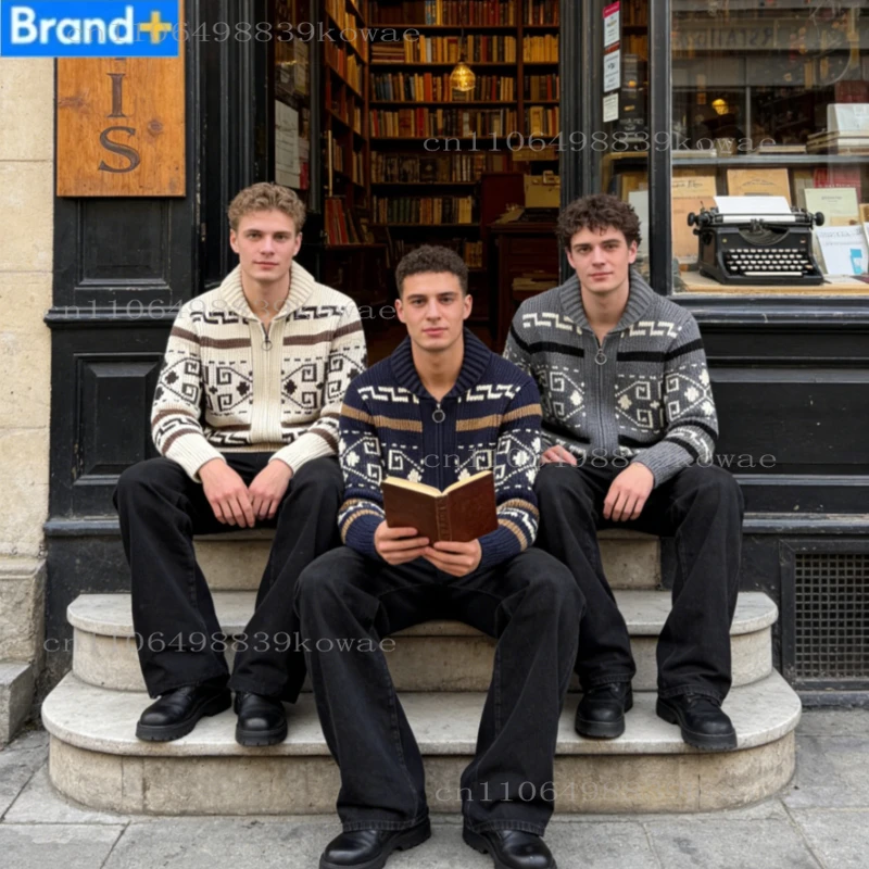 Automne hiver hommes décontracté Sweatercoats Vintage col rabattu fermeture éclair tricoté Cardigans hommes à la mode mince tricot pull veste