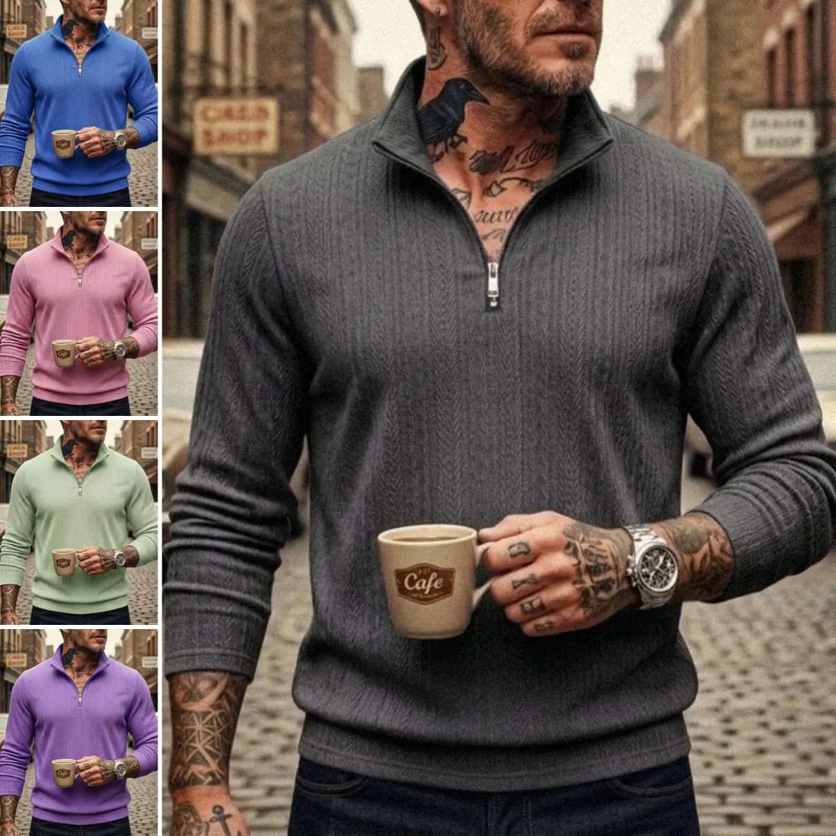 Nouveau Pull Homme Automne Hiver 2026 – Décontracté, Couleur Unie, Manches Longues, Col Montant Zippé – Haut Chaud pour Homme