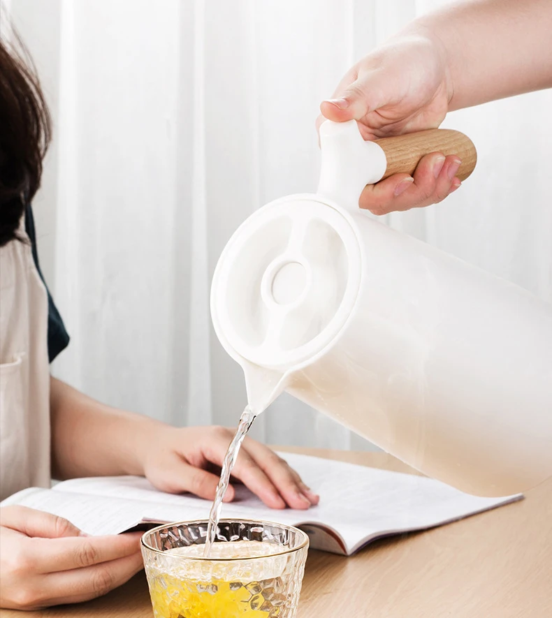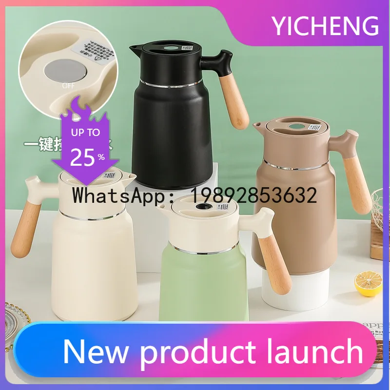 Bouilloire à vide en acier inoxydable avec poignée en bois PYJ, thermos domestique