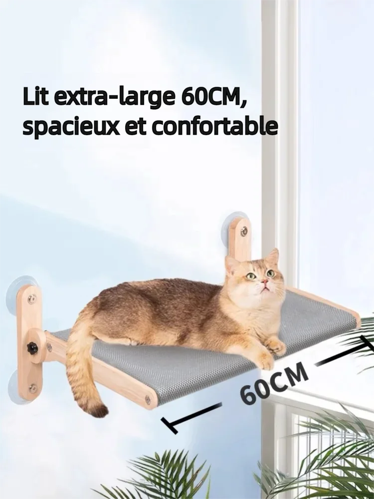 Hamac pour chat à fixer sur fenêtre, ventouses Ø85mm – tissus interchangeables, supporte 20KG