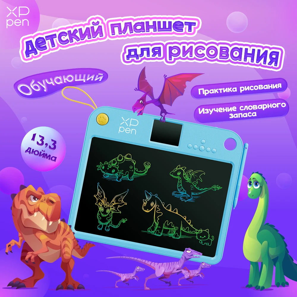 Tablette de dessin rose XPPen, écran LCD de 13,3 pouces, tableau d'apprentissage pour enfants, apprentissage du dessin et du vocabulaire russe