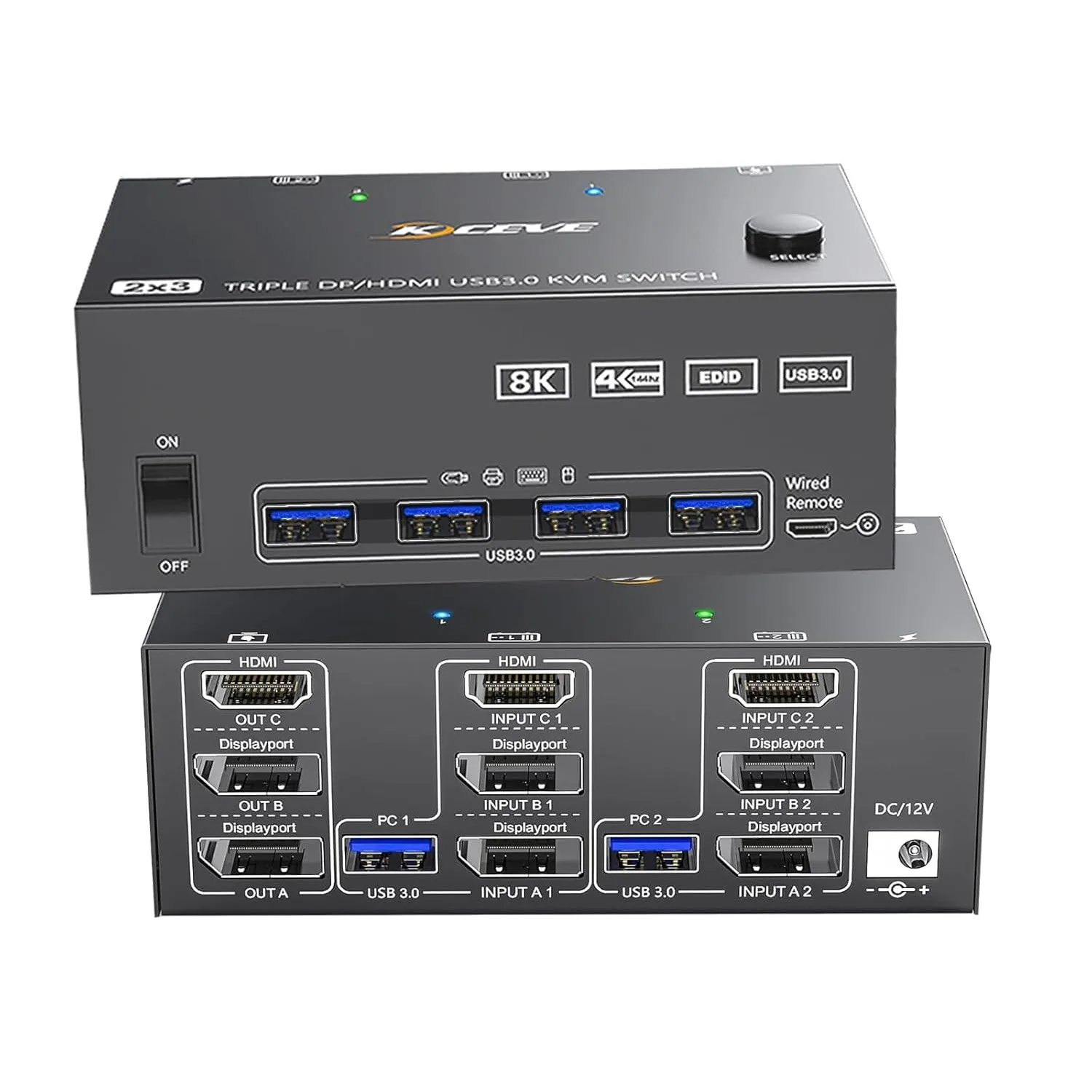 Commutateur KVM HDMI DisplayPort 3 moniteurs 2 ordinateurs 8K@60Hz, JYCETSY Commutateur KVM triple moniteur HDMI 2.1+2 DP1.4 pour 2 PC partageant 3