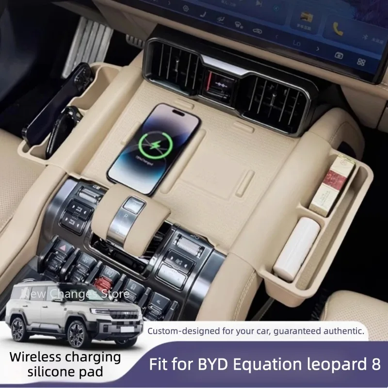 Pour BYD Equation Leopard 8 2025 2026 : Tapis de recharge sans fil en silicone pour boîte de rangement centrale – Accessoires de modification