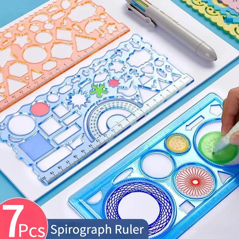 Pochoirs de dessin de géométrie spirographe, règle géométrique, modèle de peinture, artisanat d'art, jouet pour enfants, 7 pièces/ensemble