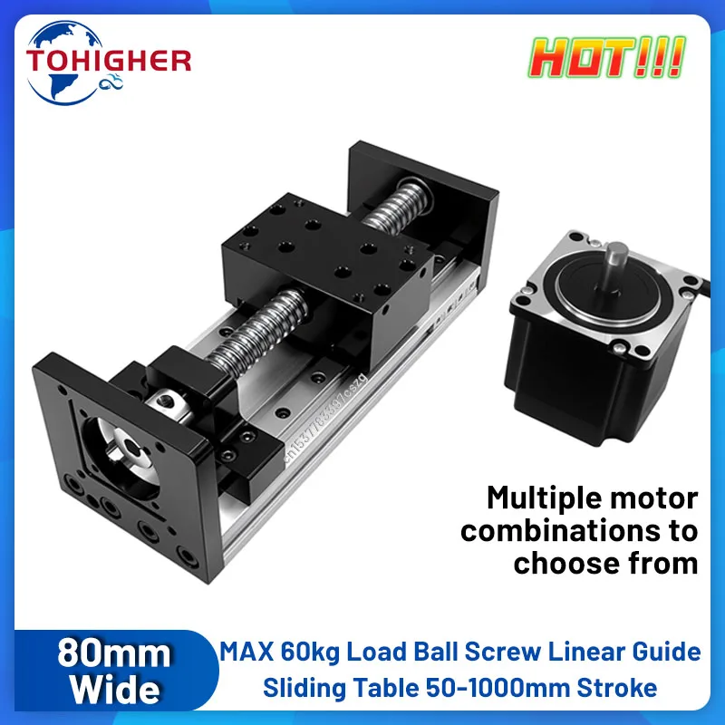 Kit de moteur linéaire de 80mm de large, Table coulissante CNC, vis à billes, Table à mouvement linéaire 1204/SFU1605/SFU1610, Robot à axe unique en aluminium 80KG