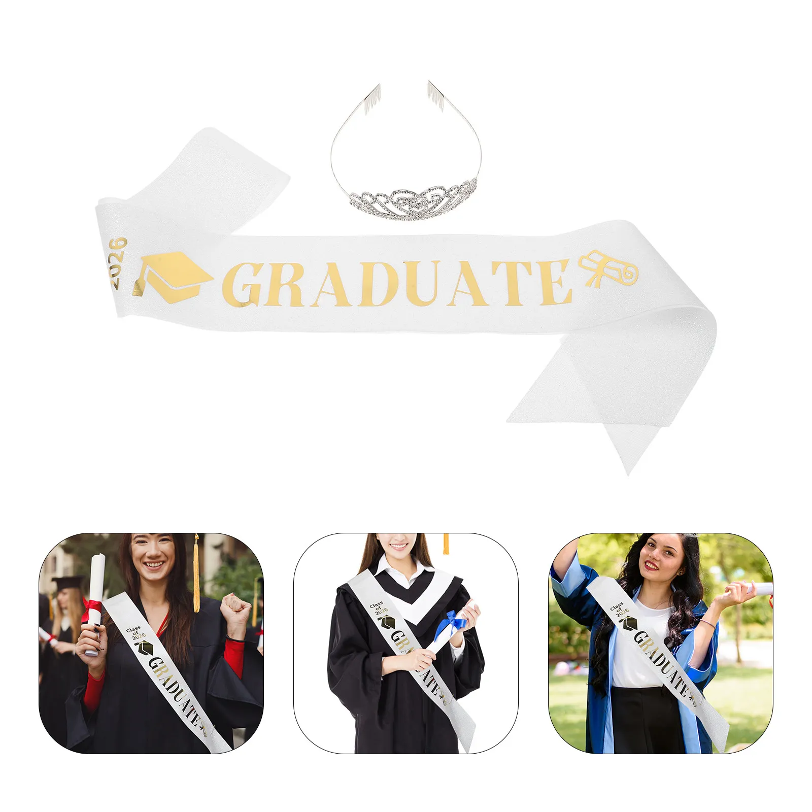 1 Ensemble Couronne et Écharpe de Remise de Diplôme 2026 pour Femme - Idéal pour la Décoration de Fête de Remise de Diplôme et les Fournitures de Cérémonie