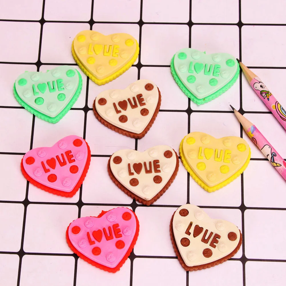 Gommes à gâteaux en forme de cœur pour enfants, 20 pièces, motifs amusants en vrac pour l'école et la maison, activités d'apprentissage