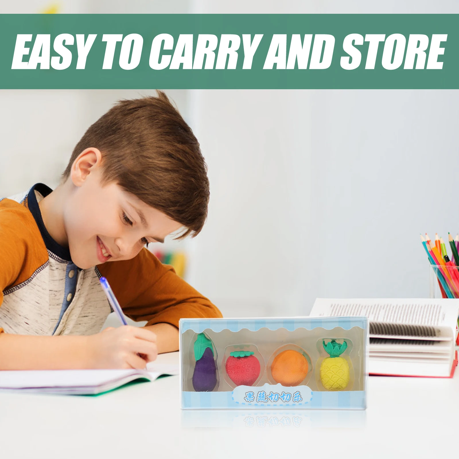 Mini gommes à thème fruits et légumes en vrac, 4 pièces, artisanat fin, matériau en caoutchouc sûr pour papeterie scolaire, cadeau