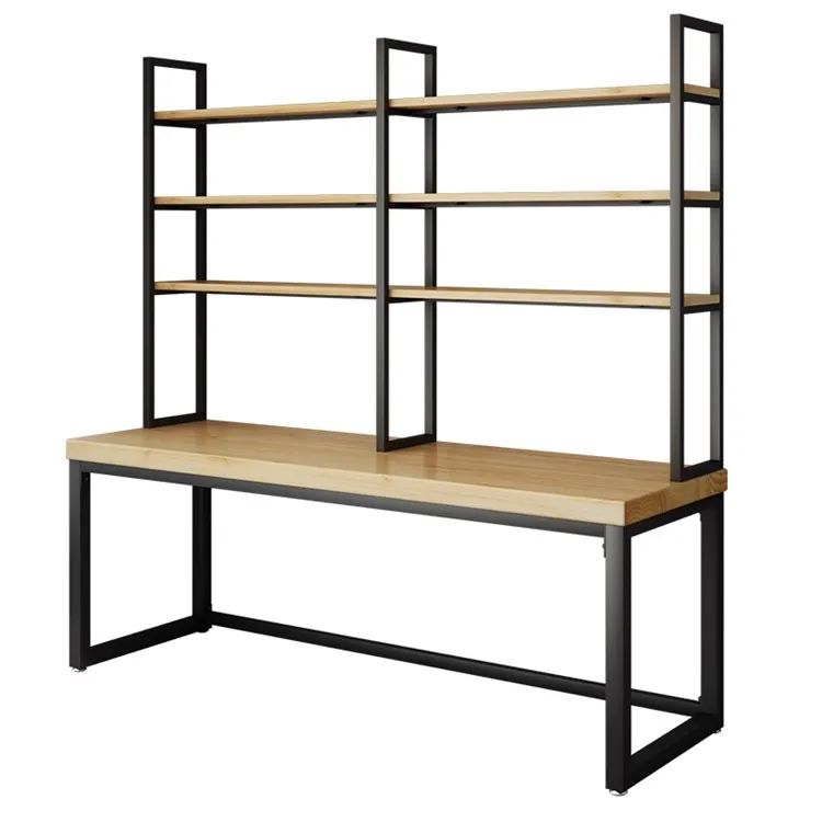Bureau de maison en bois massif avec bibliothèque intégrée, support pour CD Non perforé, combinaison d'étagères et affichage de cloisons
