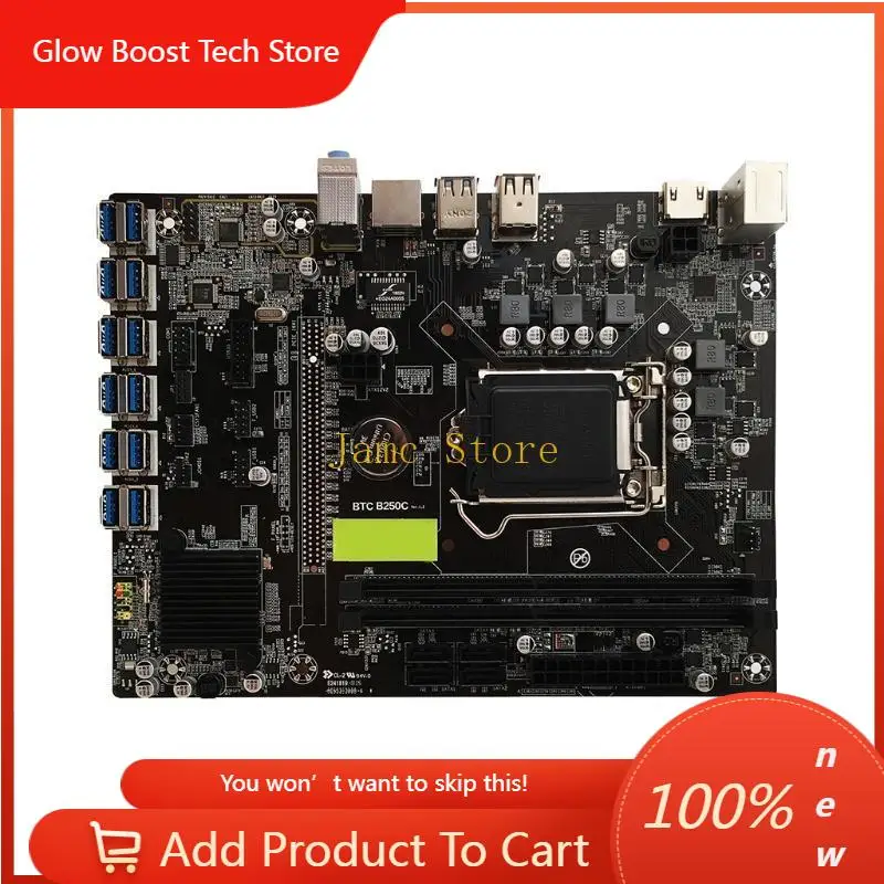 Carte mère de minage NYLX0B B250C BTC avec processeur G3900 + 4G/8G de mémoire DDR4 2133 MHz, 12 ports USB3.0 vers PCIe, emplacements graphiques LGA 1151Pin