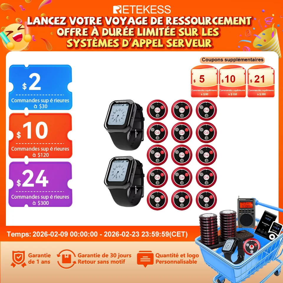 RETEKESS-Système d'appel WaClaCalling sans fil pour restaurant, montre tactile étanche, bouton d'appel pour café, bar, ovale guilé, hôtel, TD113, T117