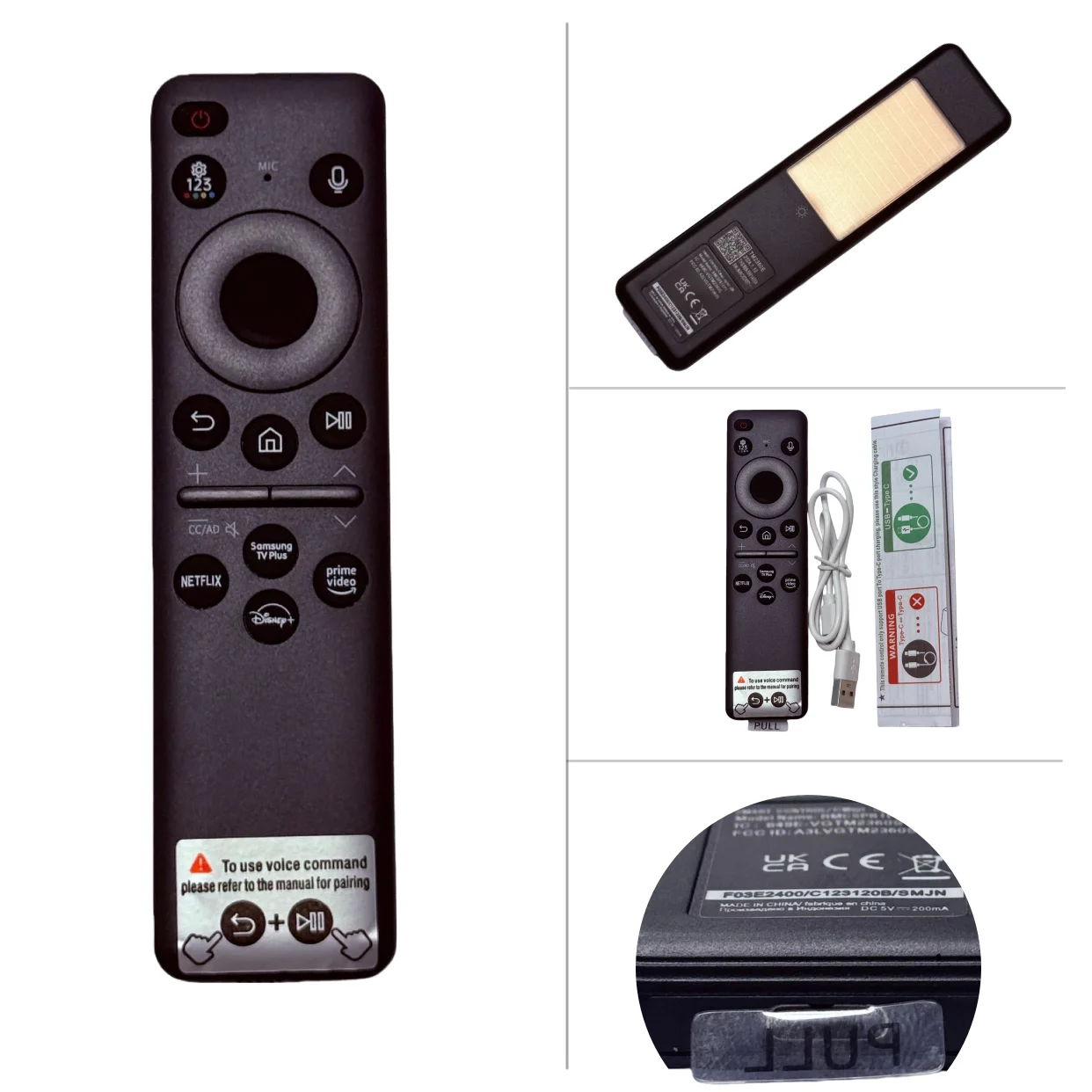 Télécommande vocale de remplacement pour Samsung Smart TV BN59-01432A/BN59-01432AJ, recharges solaires avec modèle Neo QLED HDR type-c 2023