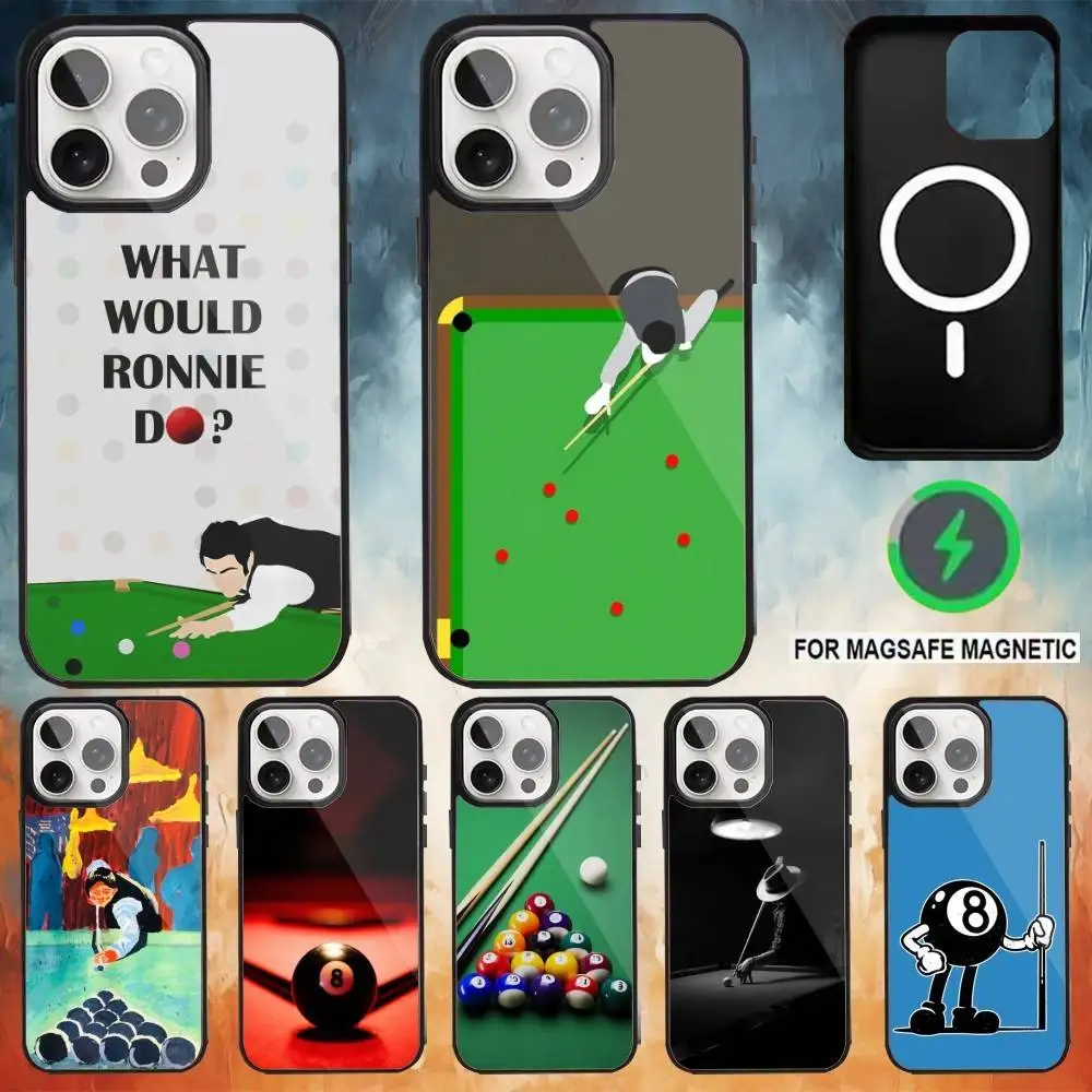 Coque de téléphone B-Billiards Snooker pour iPhone 17, 16, 15, 14, 13, 12, Plus, Pro, Max compatible avec la recharge magnétique sans fil MagSafe