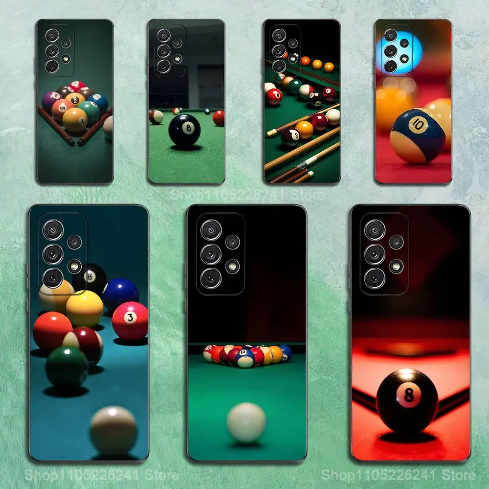 Coque de téléphone pour Samsung Galaxy A73,A72,A71,A70,A52,A51, autres, couverture noire souple, billard, snooker, sport
