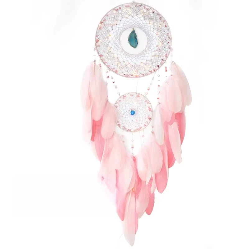 Seuil de fenêtre de chambre à coucher en forme de cœur rose pour fille, décoration créative pour la maison, carillons éoliens, pierres concassées, attrape-rêves, pendentif en plumes