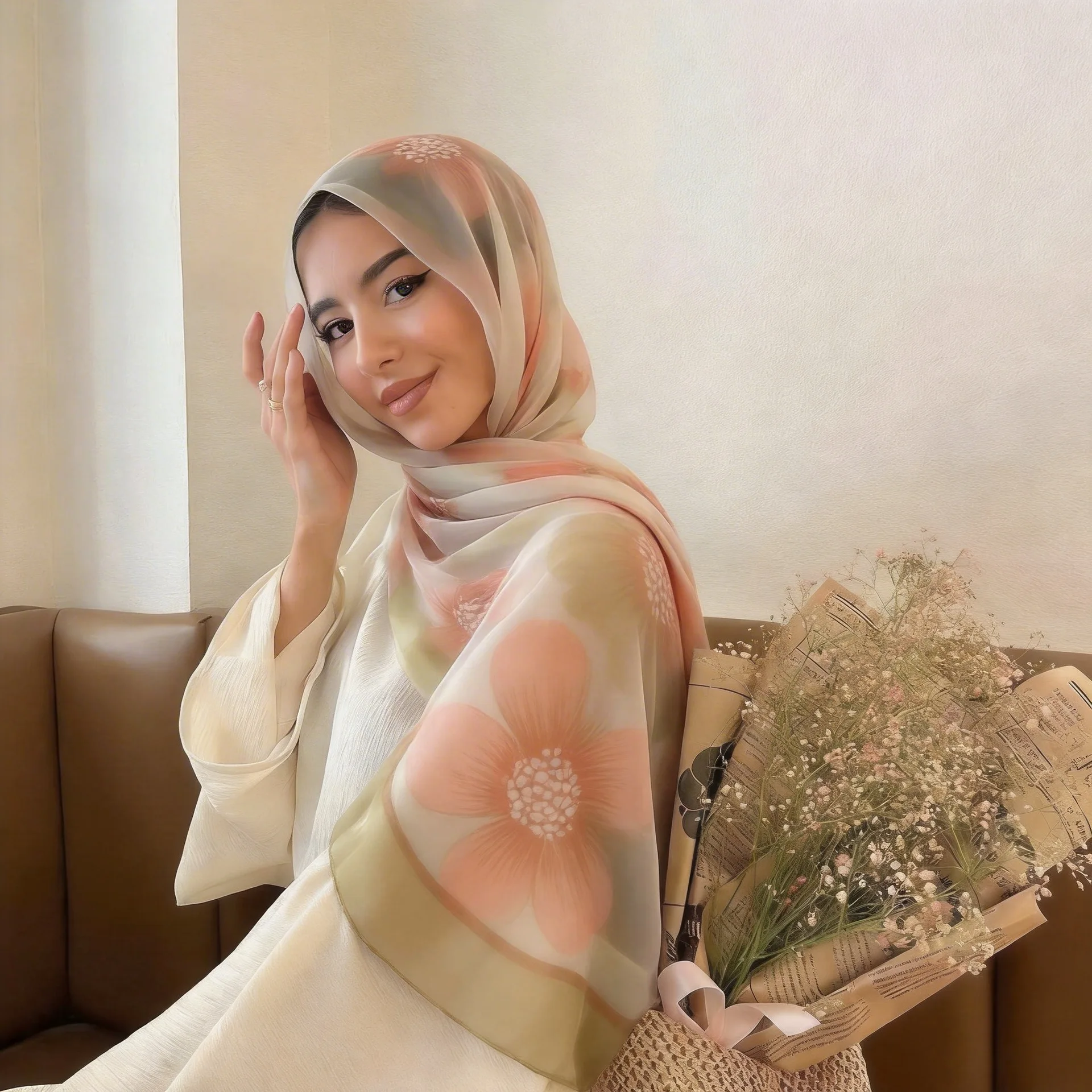 Nouvelle Écharpe Florale en Fil de Bali Printemps-Été, Motif Floral Léger et Frais, Châle Polyvalent Tendance
