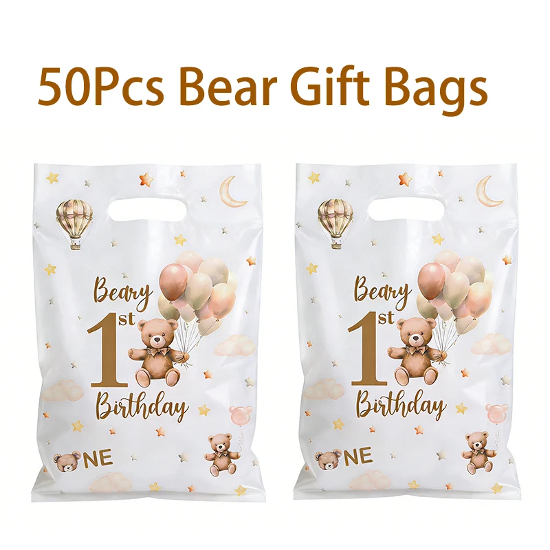 50 pièces de sacs cadeaux en OPP avec motif d'ours de dessin animé, sacs pour bonbons et gâteaux pour baptême, sacs pour enfants, 1er anniversaire, fête de naissance, décoration de fête