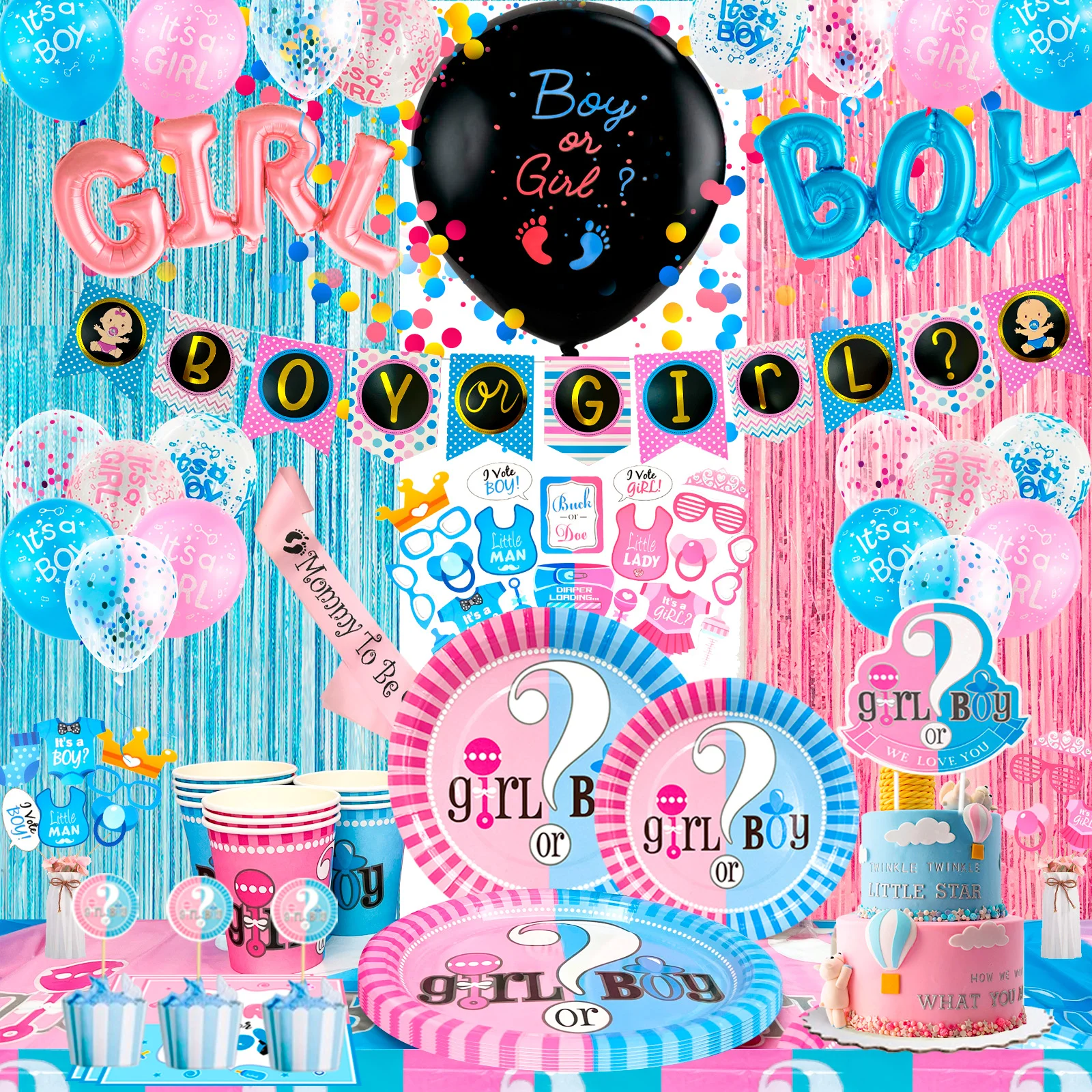 Pack de décoration de fête pour révélation du genre, Kit de décorations pour révélation du genre, 18 pièces, comprend des assiettes pour révélation du genre, des tasses et des ballons, etc.