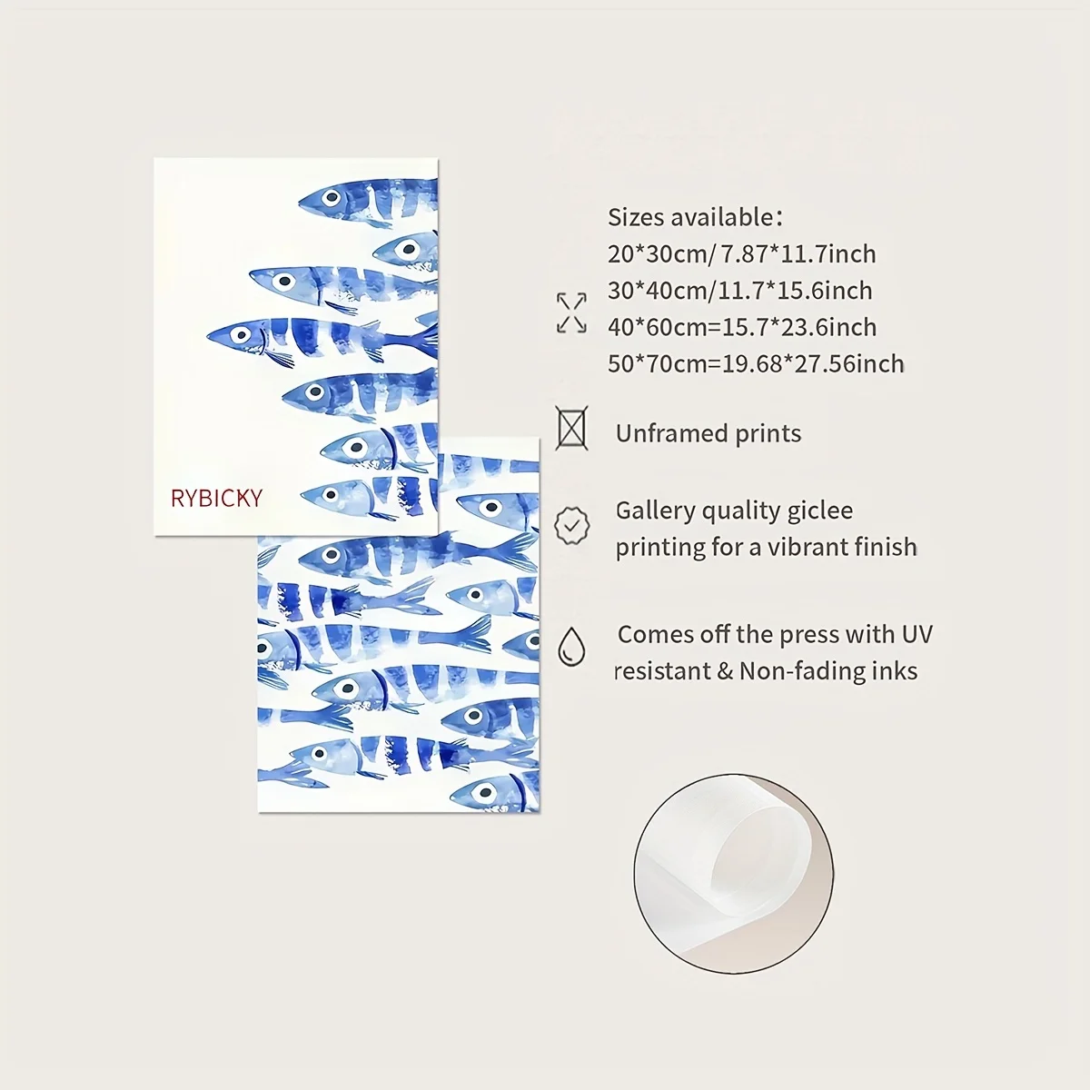 Ensemble de tableau de bord de sardine 2 pièces/ensemble, impression de poisson aquarelle bleue, affiche de sardine, décor nautique de maison de plage, Art mural de bord de mer, Vintage