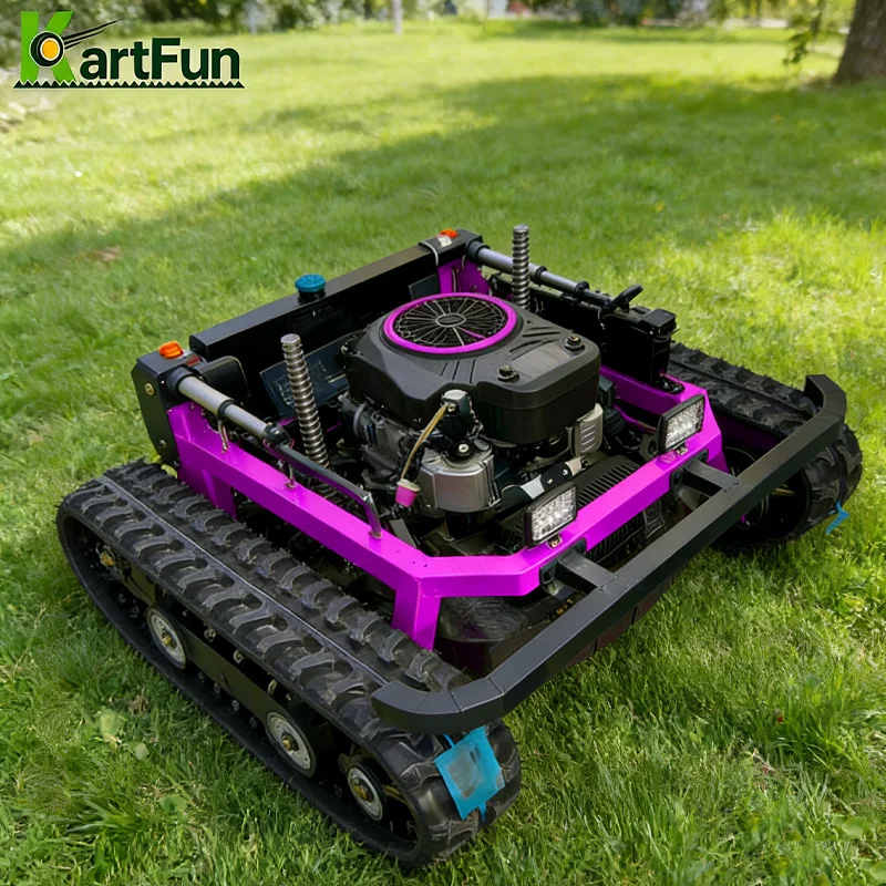 Tondeuse à gazon RC robuste personnalisée avec vitesse 5 KM/H, moteur 224 cc, démarrage à distance intelligent et fonction d'arrêt d'urgence