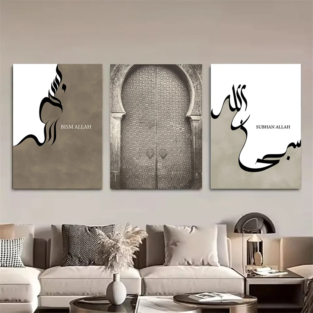 Impressions sur toile de versets du coran islamique, calligraphie arabe musulmane, affiches d'art murales pour décoration de maison moderne, cadeaux Eid al-fitr, 3 pièces/ensemble