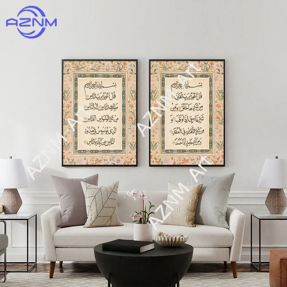 Affiche d'art musulman vintage à motif arabe islamique, impressions sur toile de calligraphie de la Sourate An-Nas pour la décoration de salon et de maison