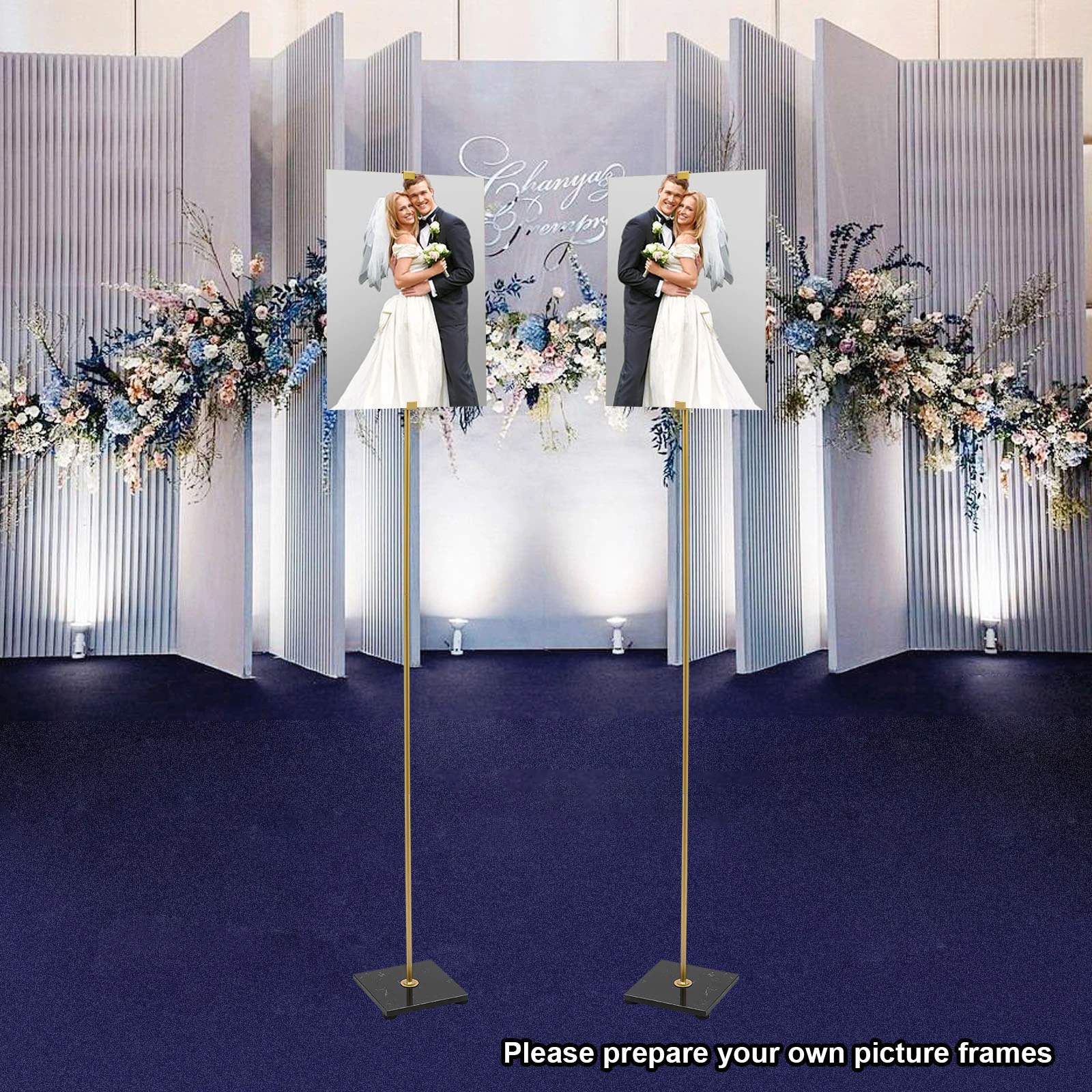2 présentoirs de bienvenue de mariage en or, 50 x 104 cm, utilisés dans ce support de chevalet de mariage, fournit une base solide en support de poids