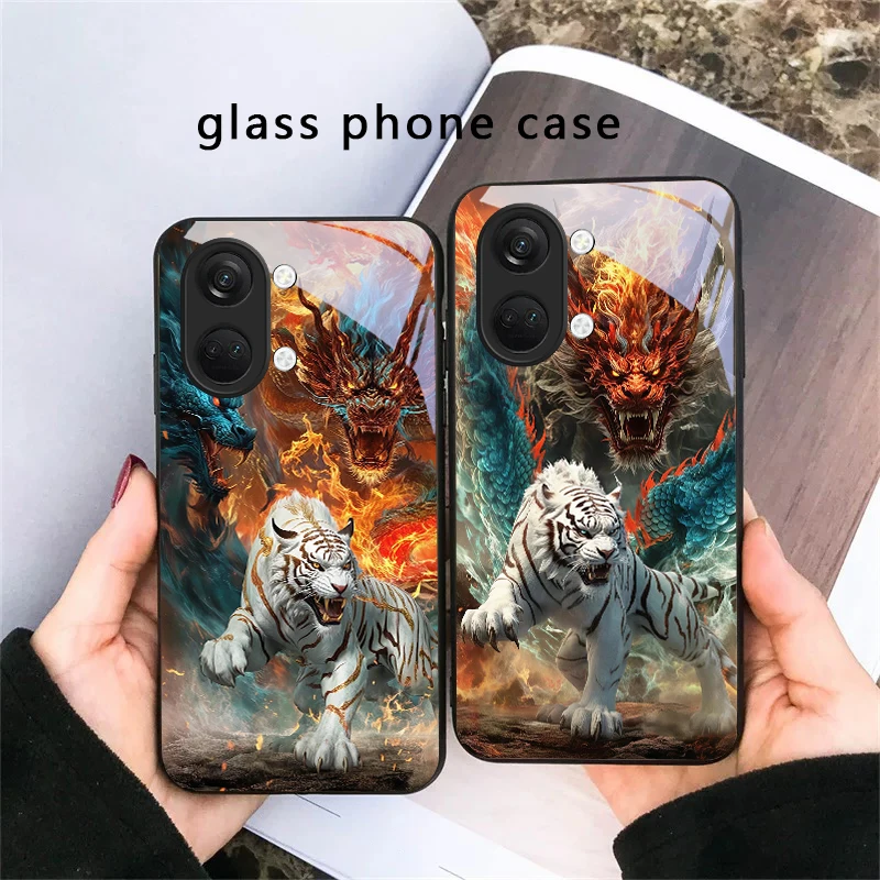 Étui de téléphone en verre avec motif de dragon et de tigre pour OnePlus Ace 2 3 2V 5 Pro Nord CE 2T 2 3 Lite N20 N30 6 7T 8 8T 9 10 Pro 11R 12R 13R