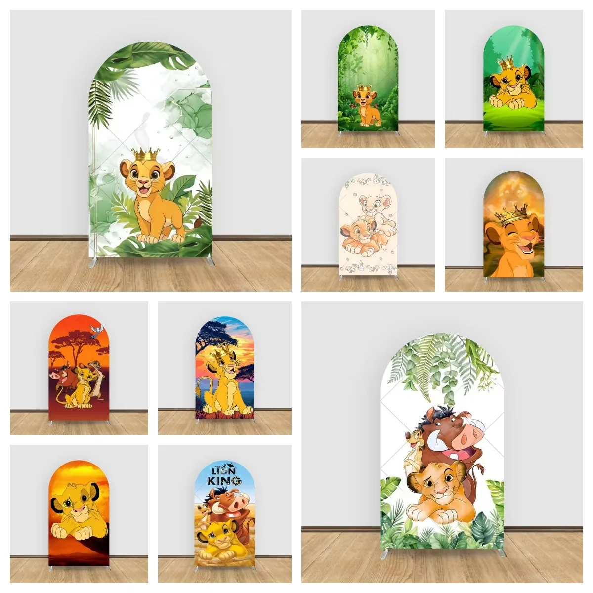 Housse de toile de fond en forme d'arche Roi Lion Simba pour fête d'anniversaire d'enfants, décoration de baby shower, arrière-plan photographique pour studio photo
