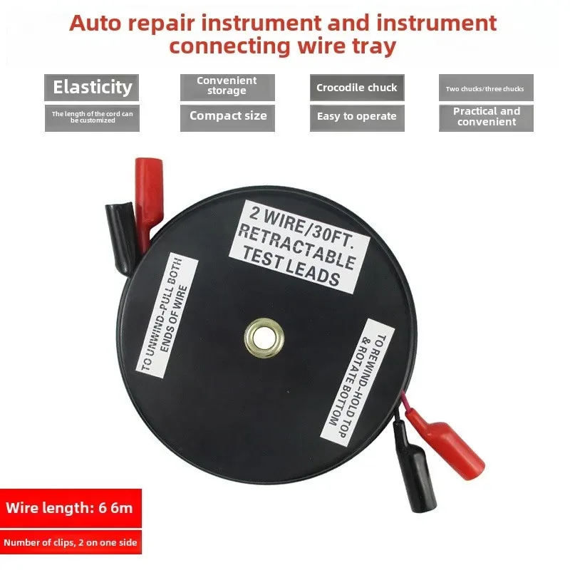Bobine de câble de test multimètre automobile 6M, fil d'extension robuste pour diagnostic automobile/test de tension/courant