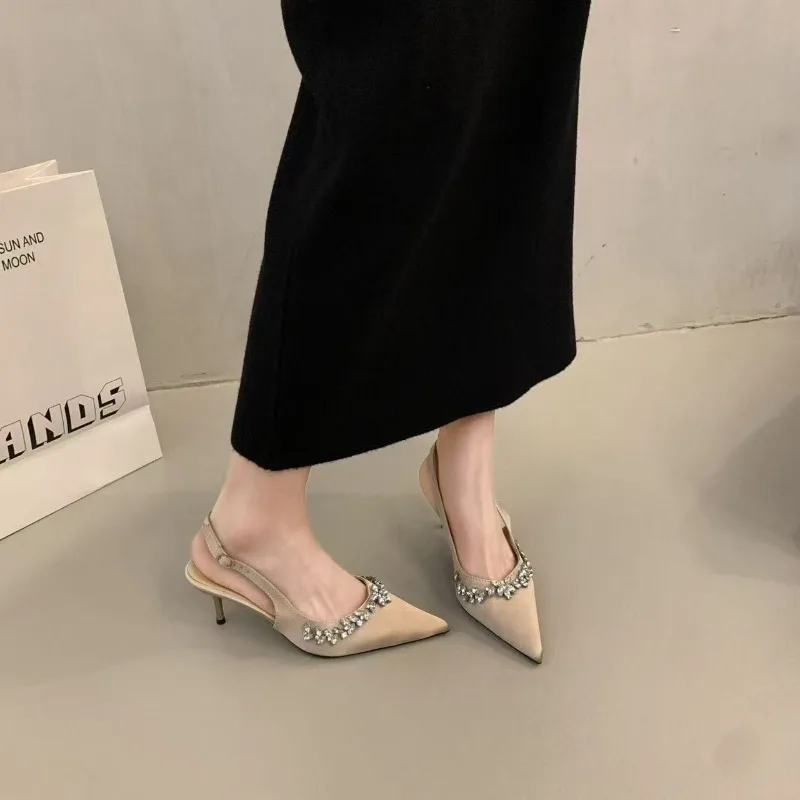 Sandales pour femmes Baotou, printemps-automne 2026, nouvelles sandales élégantes en satin avec strass, talons aiguilles