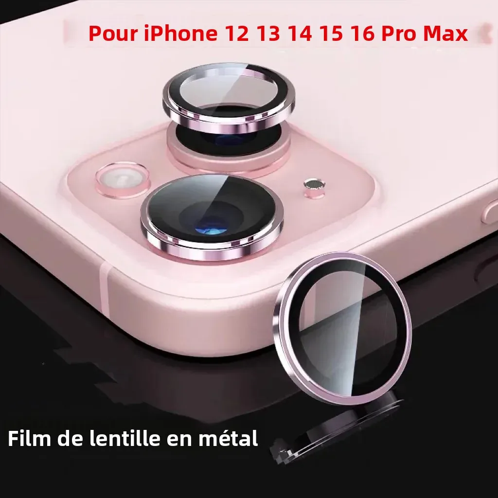 Verre de protection d'objectif en métal pour iPhone 17 Pro Max Air 14 15 13 11 12 16 Pro Max Plus 12 13 Mini Film de protection en verre pour appareil photo