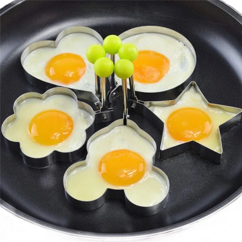 Anneau de moule à œufs rond en acier inoxydable, 5 pièces, cœur, fleur, étoile à cinq branches et Mickey Mouse, anneau de moule à œufs, ustensile de cuisine