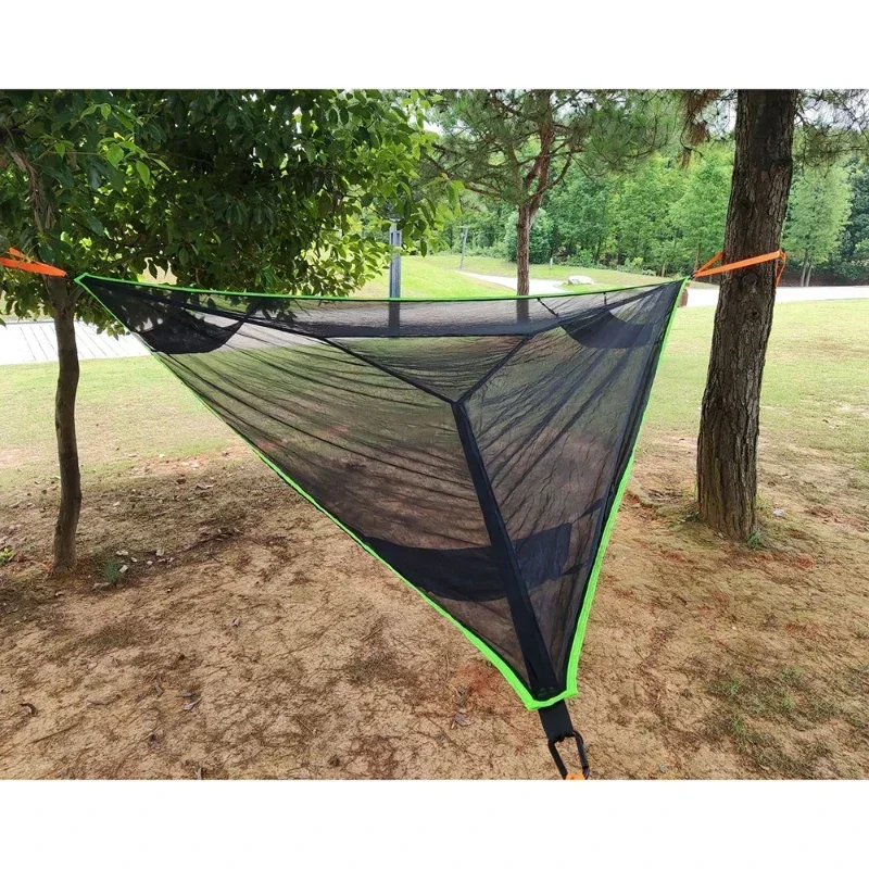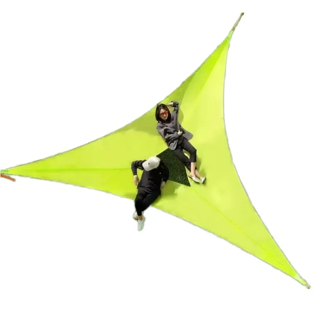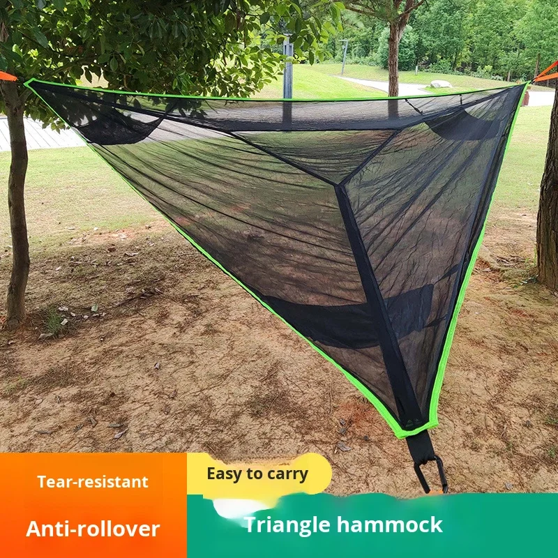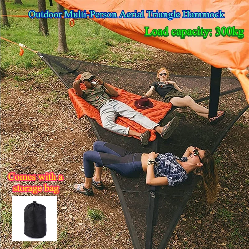 Hamac triangulaire multi-personnes, portable, en maille, pour accrocher aux arbres, tente de camping en plein air