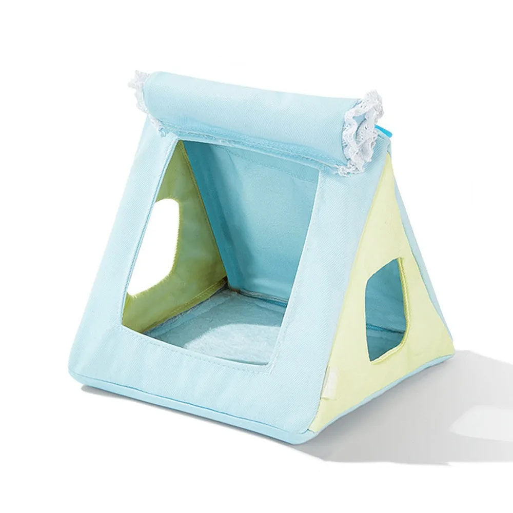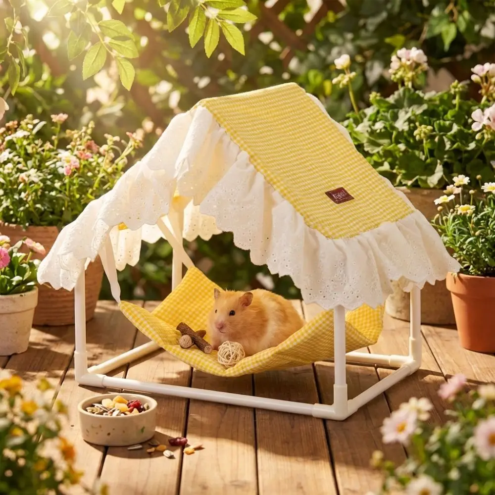 Tente triangulaire pour hamster avec franges, pare-soleil détachable, petit nid pour animaux de compagnie avec hamac, abri ventilé pour animaux de compagnie, cage, maison