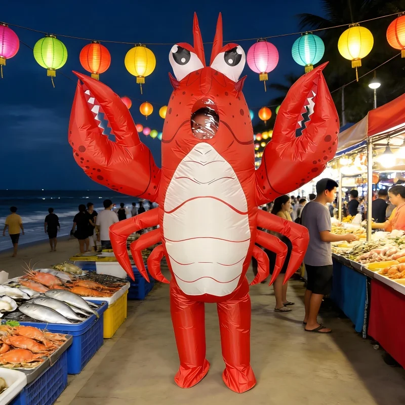 Tenues gonflables pour adultes en forme de crevettes et de homards, style dessin animé amusant, accessoires et costumes pour spectacles de festival et de scène