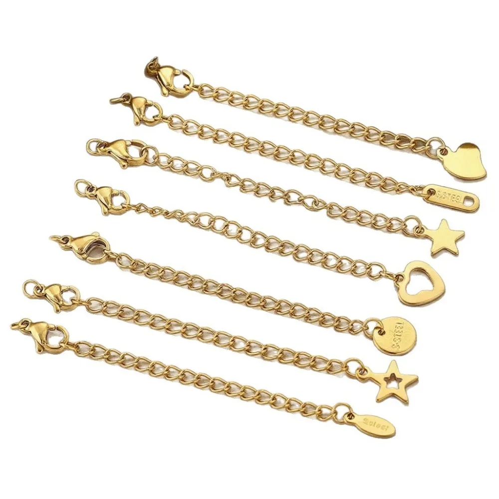 Chaîne d'extension en acier inoxydable PVD, ne se décolore jamais, chaînes de queue étendues, fermoirs à homard pour la fabrication de colliers et de bijoux, 10 pièces
