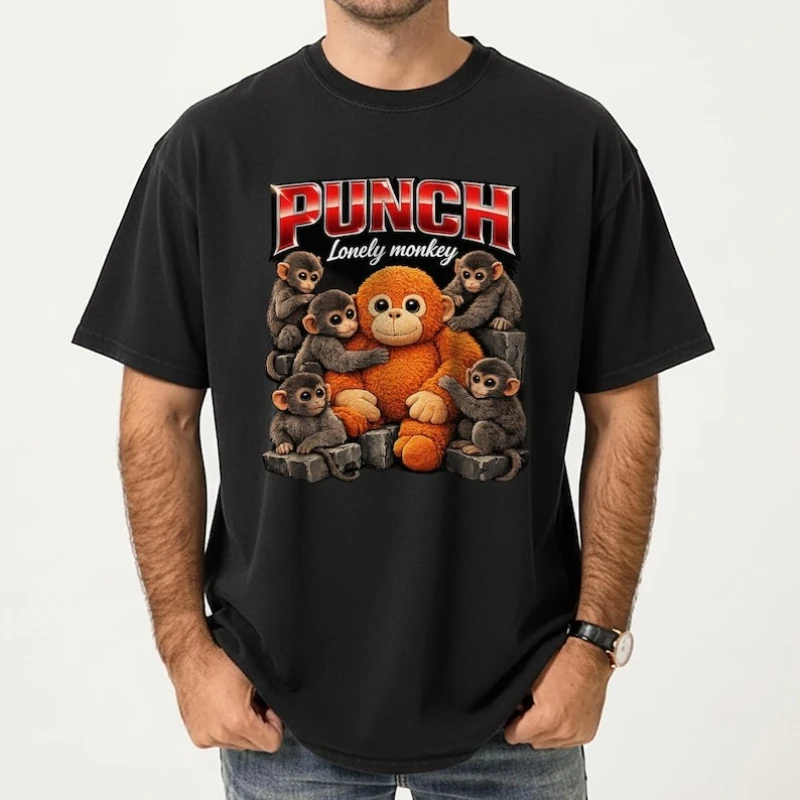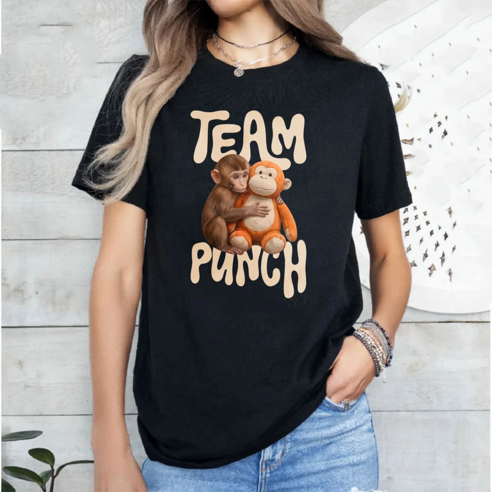 T-shirt Team Punch Monkey, motif mignon de macaque bébé en peluche, tee-shirt viral de meme, cadeau amusant pour les amoureux des animaux, été, manches courtes