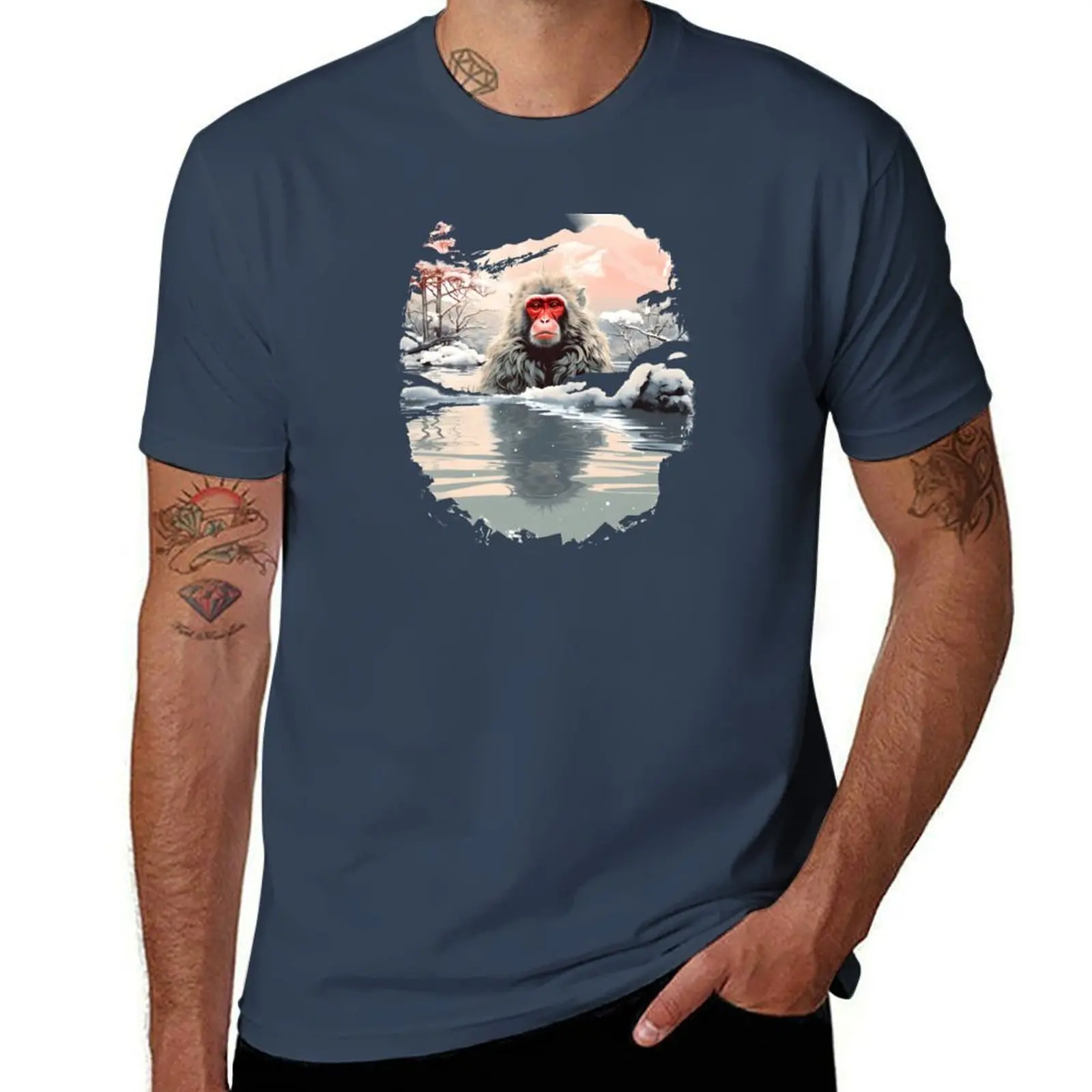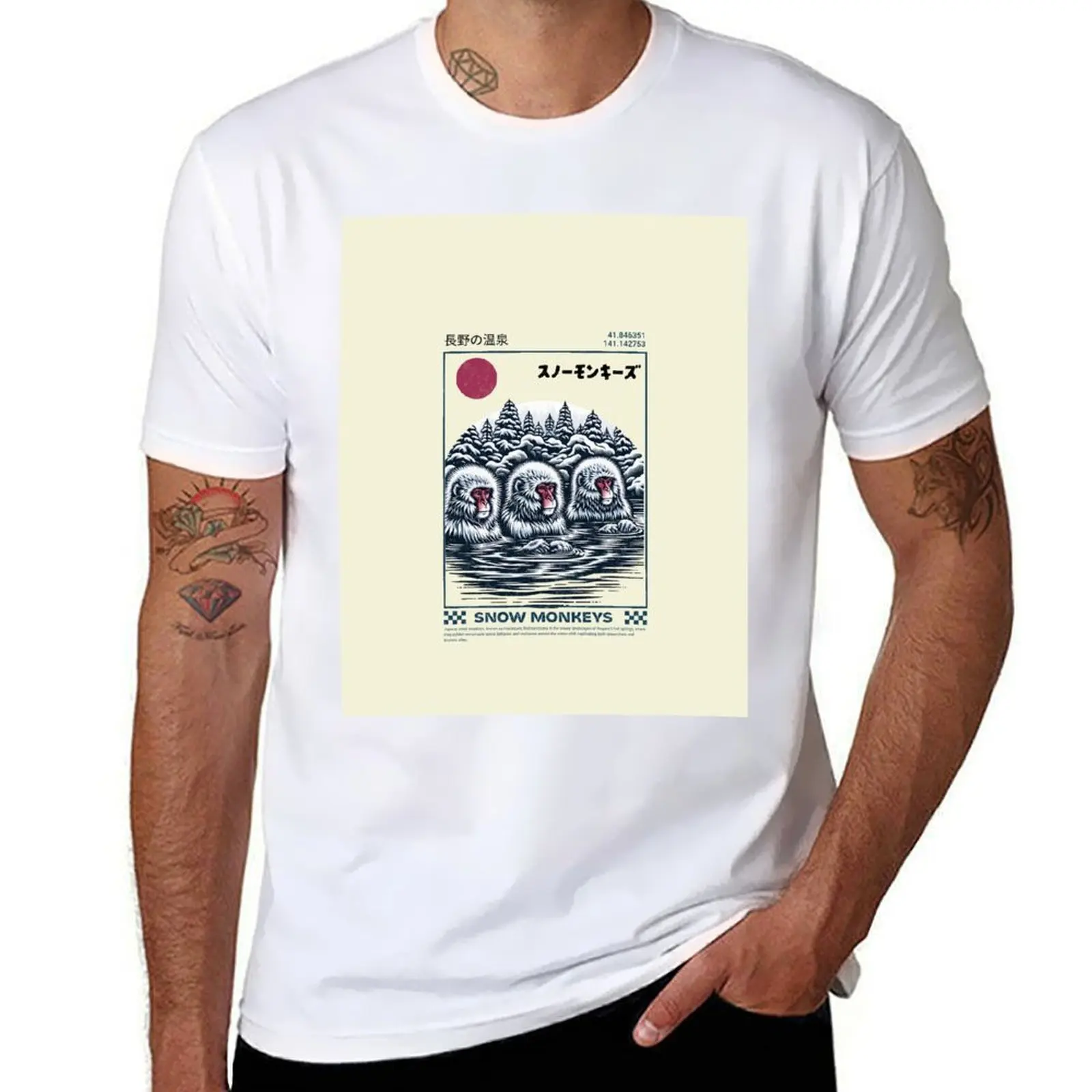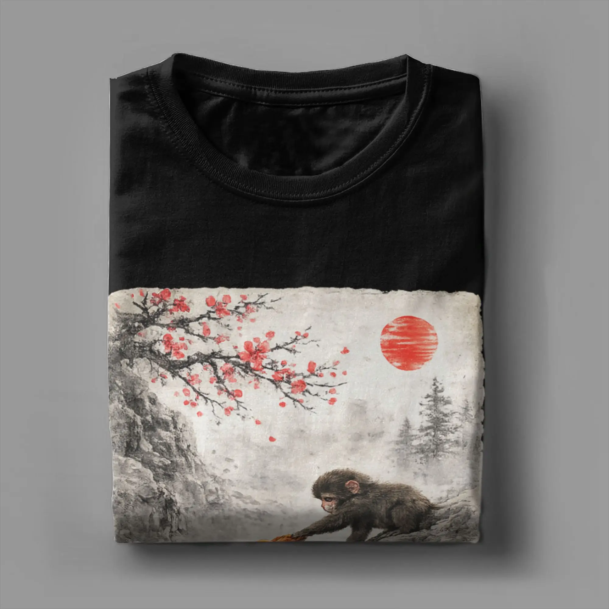 T-shirts en coton pour hommes, style kawaii, motif singe bébé, macaque japonais mignon, Ukiyo-E, vêtements vintage à manches courtes, col rond
