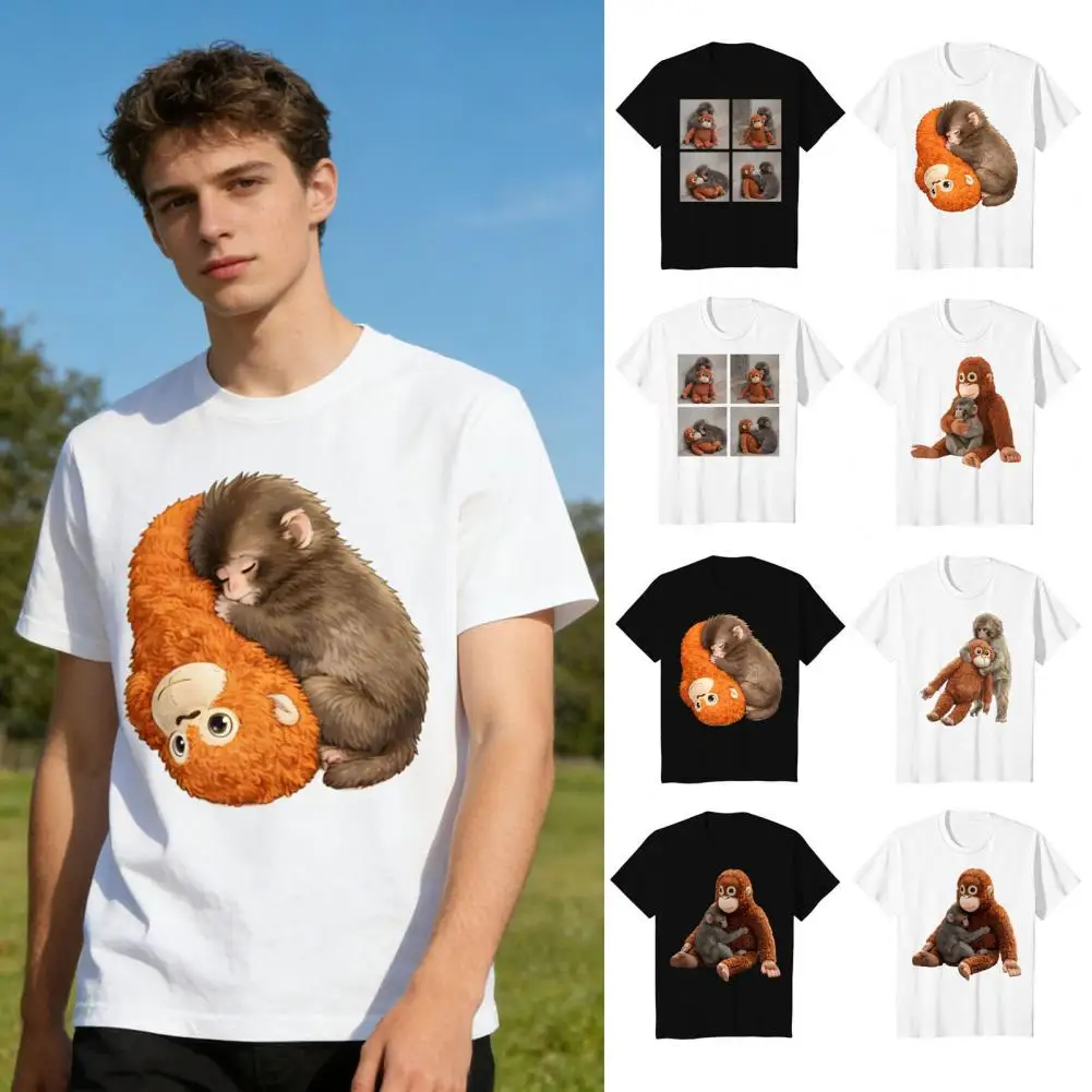 T-shirt Monkey Punch pour hommes, col rond, manches courtes, coupe ample, motif mignon Macaque Orangutan, tee-shirt d'été pour hommes et adolescents, style streetwear